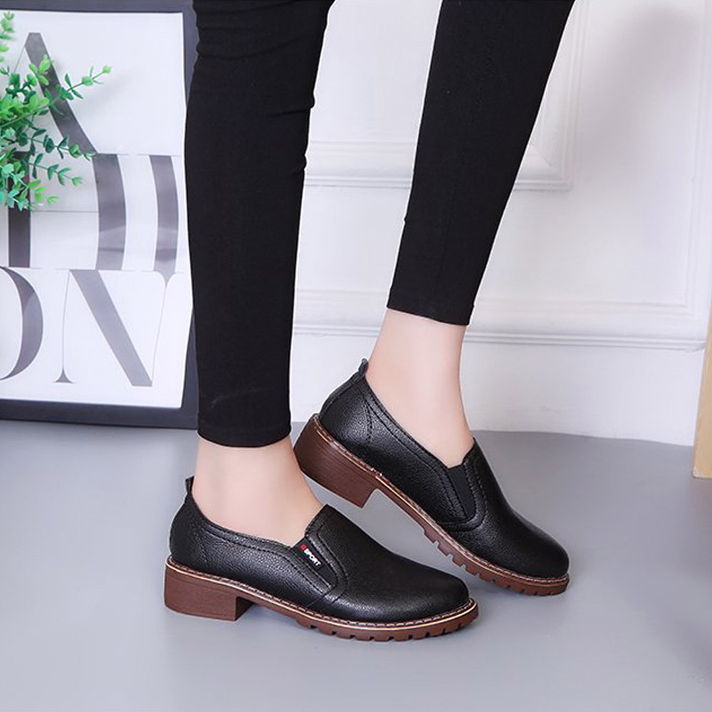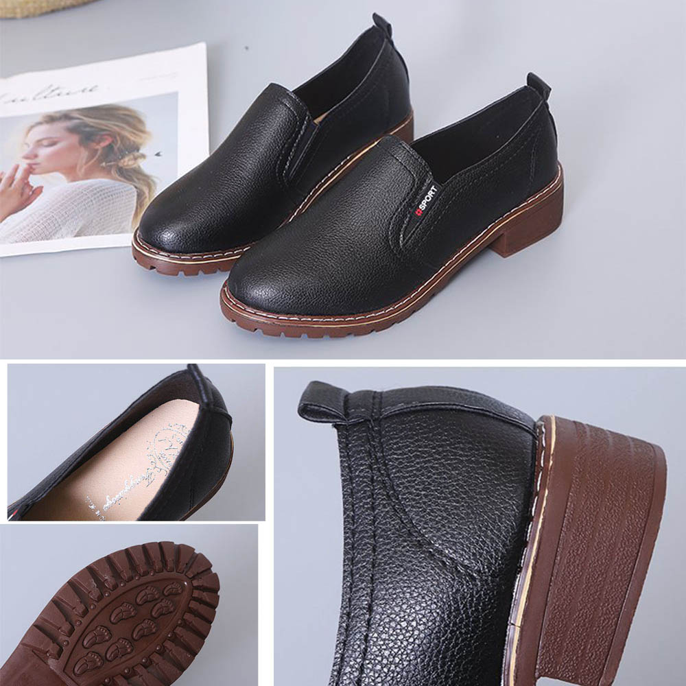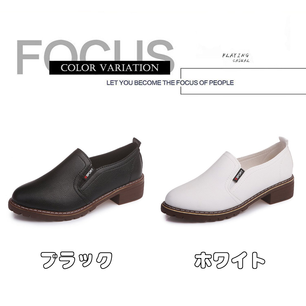 シンプルで個性的なデザインの革靴風スリッポンシューズ