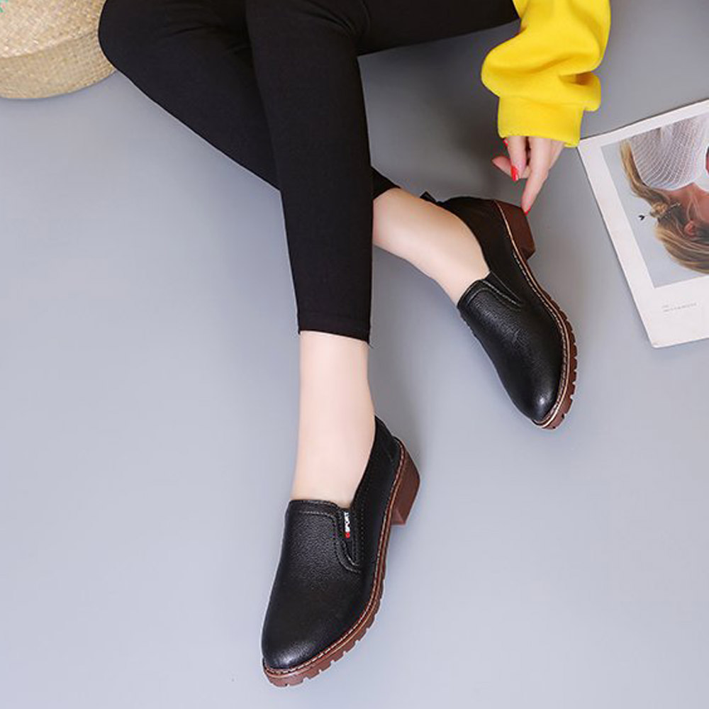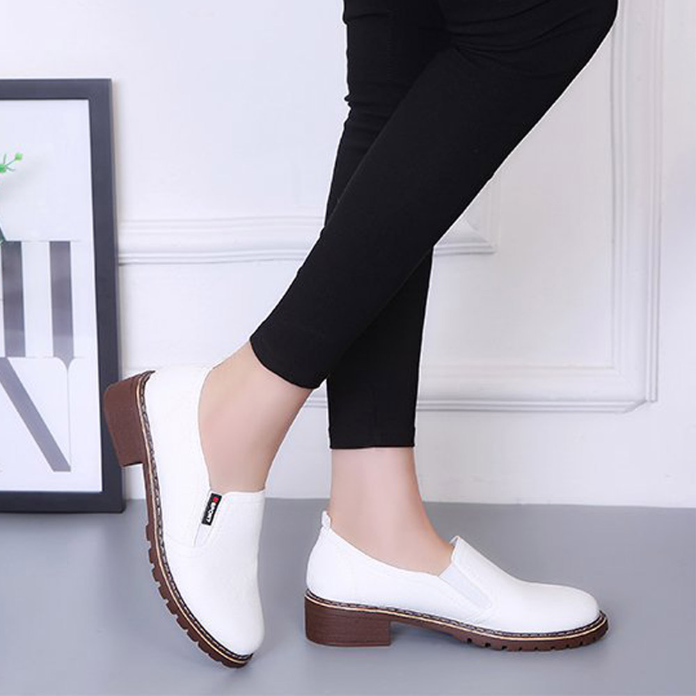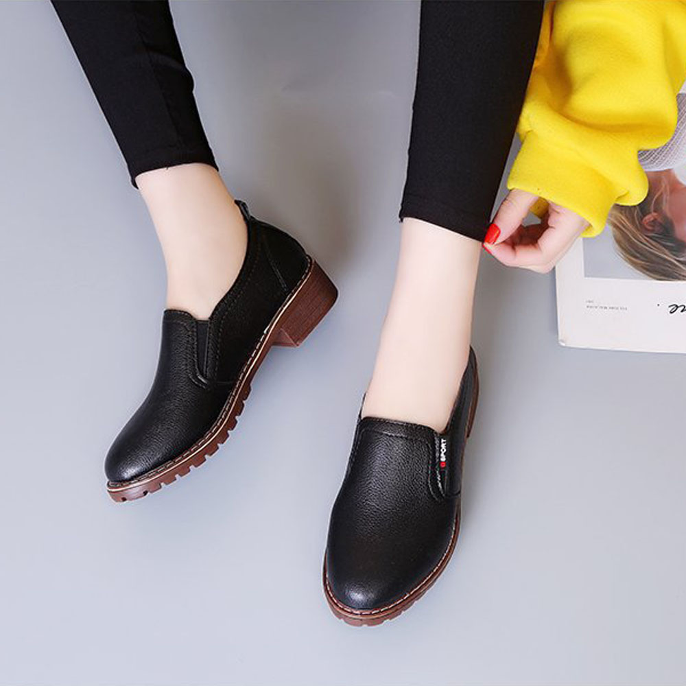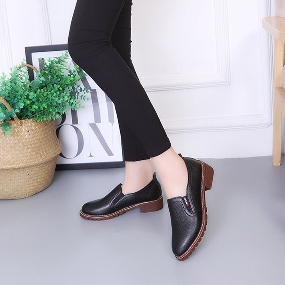 シンプルで個性的なデザインの革靴風スリッポンシューズ
